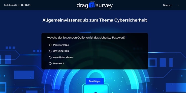 >> Erstellen Sie ein Quiz zur Cybersicherheit mit Drag’n Survey, klicken Sie hier